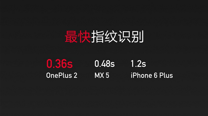 除了不同的解锁流程,和取消 Home 键键程之外,一加还表示,0.36 秒的指纹解锁时间,是目前手机中最快的,此处躺枪的是魅族 MX5 和 iPhone 6 Plus。