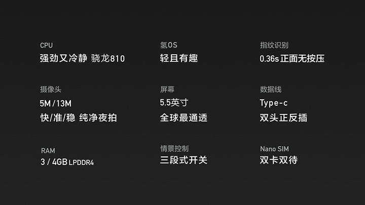 刘作虎一直讲究的是,参数不重要,因此这次他也说,参数是一加手机最平庸的部分,但是这一次一加手机 2 的参数仍是市面上 Android 手机最高规格级别。具体来讲就是:
