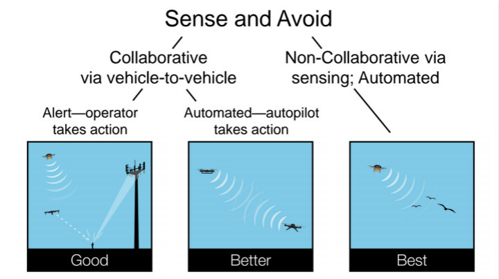 其实,在这一系统之前已经有 SAA 技术(sense and avoid technology,感知和规避技术,无人机利用机载传感器或地面监视系统完成对空域飞行环境的监视和飞行目标的状态获取,对潜在碰撞威胁的目标进行规避路径规划,完成规避机动动作,从而保证航路飞行安全)可以解决这一问题,只是目前并不普及(之前有一些团队包括创业公司 Lily 用过),如果这个领域发展速度变快一些,说不定某一天 SAA 会成为通用标准。
