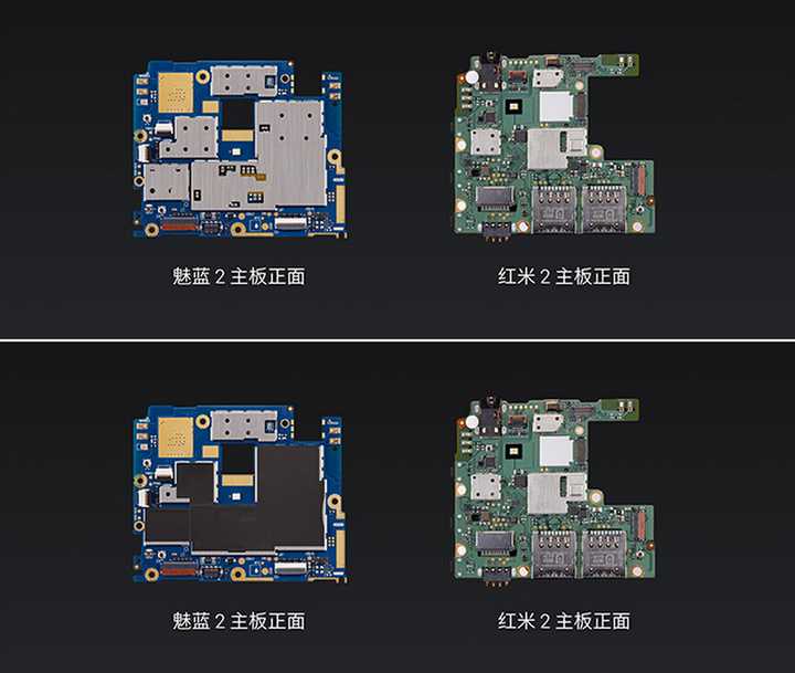 外部来看,魅蓝 2 使用了聚碳酸酯的一体机身,高精度 CNC 精雕 mBack 键。拆机看内部的话,魅蓝 2 有更多屏蔽罩的采用以及整洁的组件排列。