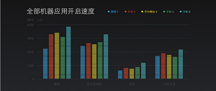 相比于其他国产千元以下手机广泛使用的骁龙 410,这次魅蓝使用的 MT6735 在性能上确实要更强一些。