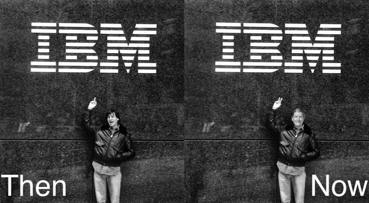 三十年河东,三十年河西。31 年后的今天,苹果 Mac 电脑的出货量在全球 PC 市场萎缩的情况下依然保持了一定的增长,而 IBM 的 PC 业务于 10 年前被联想收购,IBM 给员工配的电脑也一直是联想的产品。两者在 PC 业务上早就井水不犯河水,反而在企业市场开始有不少的合作。