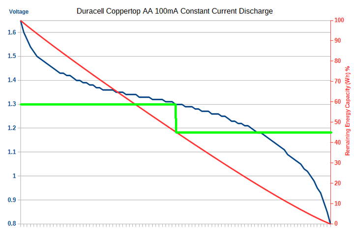 就算某人使用的全都是高功耗设备,可能也没浪费那么多电。一则关于金霸王电池的研究指出,在 1.3V 时,电池还有 45% 的余量。结合上述两点,被浪费的电池电量远远没有 80% 之多。