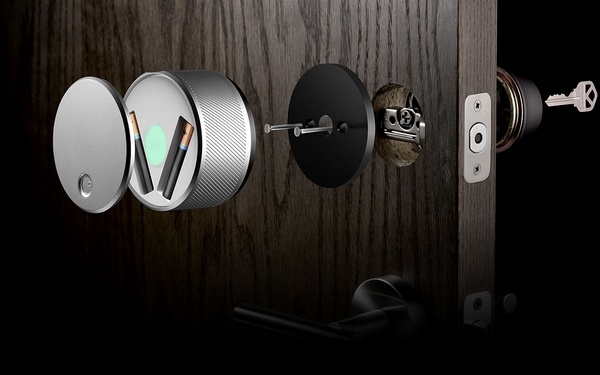 August Smart Lock 是一个智能门锁解决方案,一开始是搭配手机使用的。用户需要事先在自家门锁上安装一个智能门锁外设系统。这个智能门锁系统通过干电池供电,电力耗尽后用户还是可以使用传统钥匙解锁的方式开门。