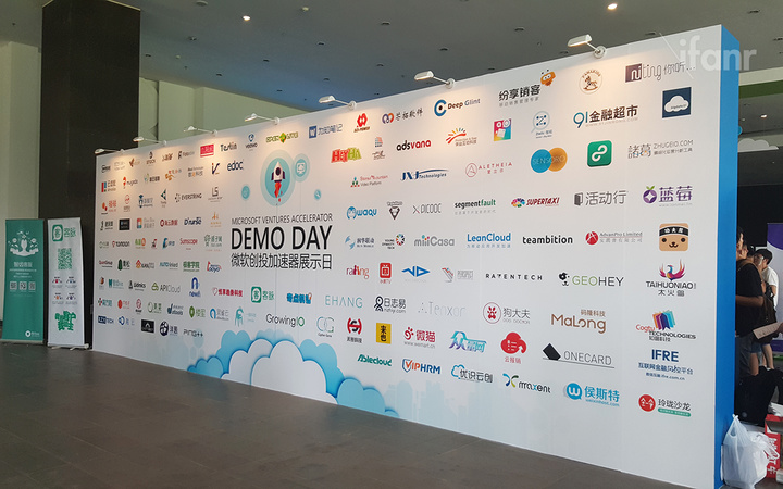 (会场外展示的微软创投加速器学员)
