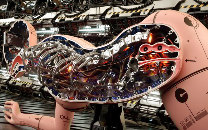 8 月 5 日,英国一位性心理专家表示,再过 50 年,人类与机器人性爱将成常态。图为法国艺术家绘制的一幅未来派女性机器人 CGI 剖面图,具有“另类的性感”(图片来自 Yimg)。