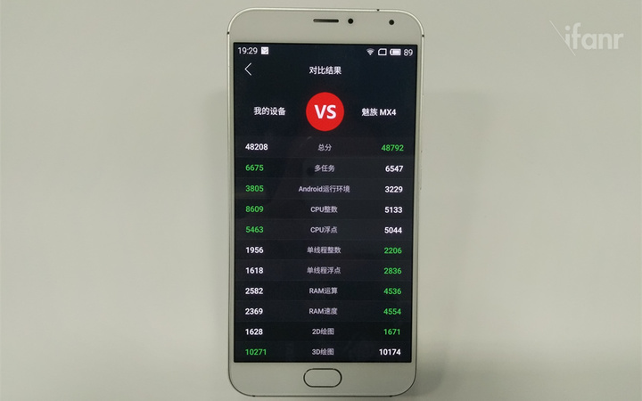 在“娱乐兔”测试中,MX5 得分与 MX4 相若。8 个核心,2.2GHz,这些都注定了 MX5 的跑分分数不会太低。CPU 性能也不会是 MX5 的瓶颈,而 G6200@700MHz 这款 GPU 倒是 MX5 某种意义上的掣肘。其理论性能相比 G6450(iPhone 6)、 Adreno 430(索尼 Z3+/HTC One M9)、Mali T760MP8(三星 S6) 甚至 Adreno 418(LG G4) 都有不及。