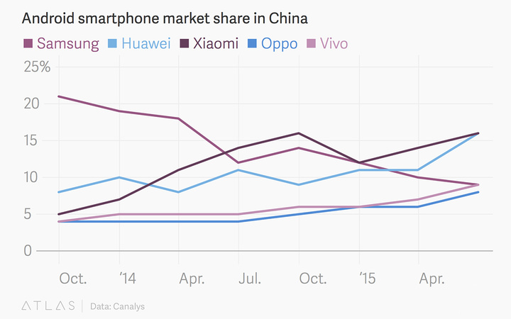 对于 OPPO 和 vivo 这对关系暧昧的兄弟在国内三四线城市的攻城略地之势,很多人都或多或少感触到,至少也会有所耳闻。而今天,他们的业绩数据终于引起了大洋彼岸的关注,Quartz 刊登了一篇文章,讲述了这两个“不知名”的手机品牌如何一步步蚕食原本属于三星和小米的蛋糕。