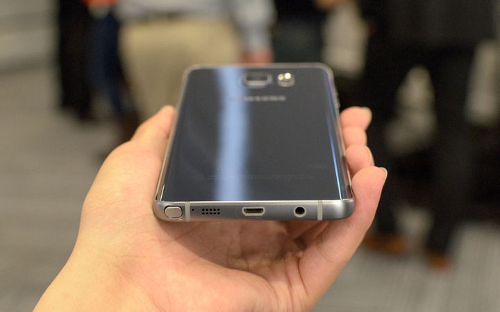 需要特别指出的是,Galaxy Note 5 的背部采用的是双曲面屏的设计,像是把 S6 edge+ 上的前置玻璃面板直接扣在了背后,同时也不禁让人误以为 Note 5 在模仿小米 Note 的设计。