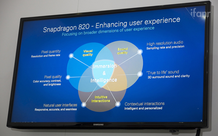 8 月 12 日,骁龙 820 亮相,高通欲以此替代之前饱受争议的骁龙 810。图为高通介绍骁龙 820。