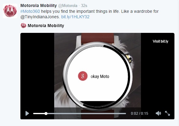 而在今天之前的早些时候,摩托罗拉也在 Twitter 上发布了一条视频,不过视频在发布后不久就被删除。视频上显示了一台与上代差不多的 360 手表,不过仔细观察的话,你会发现表冠的位置发生了变化,有网友怀疑这就是二代 Moto 360 手表。