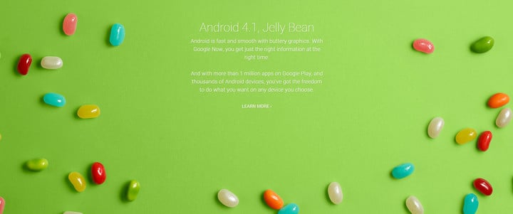 2012年6月28日,谷歌发布 Android 4.1,代号 Jelly Bean,启动了黄油计划,大幅提升了运行速度和流畅性,此外这个版本还加入 Google Now 的支持,成为苹果 Siri 最强大的敌人。