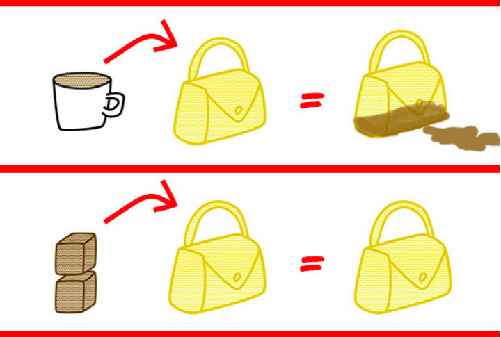 和传统咖啡相比,Go Cubes 体积小,质量轻,便于携带。如图所示。
