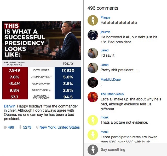 “这才是好总统”(引发了无数对奥巴马的吐槽),5000+,同样热门的还有其他政治话题。