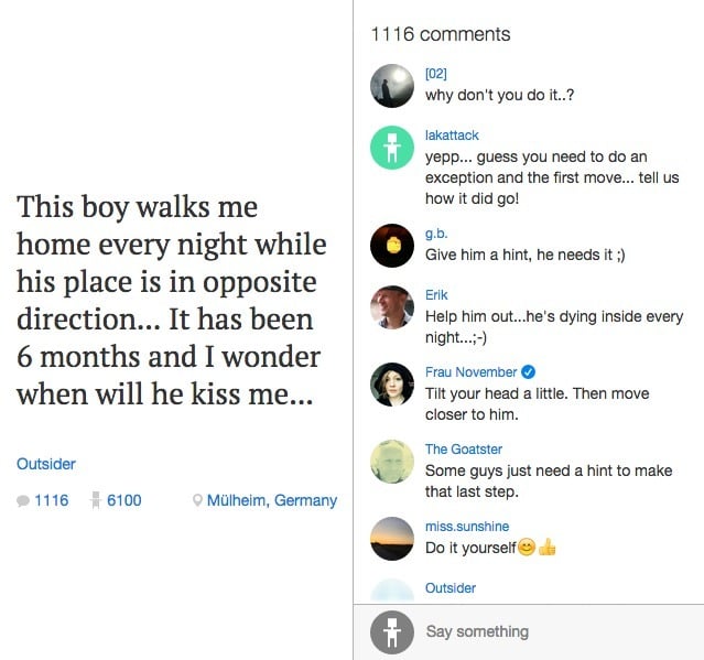 We Heart Pics 是一个传统的图片社交网络,我们尝试帮助人们用更好的图片表现自我,但它与 Instagram 太相似了。即使现在已有 300 万用户,未来也很难与 Instagram 竞争。在这次创业中我明白了一个道理——很难在有巨头的领域创新,因此我们要做得更大胆、更简单。