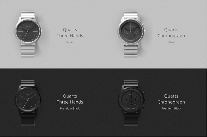 这次上线的 Wena 智能手表共分两款,有运动版,带有计时码表功能,并且有三根指针分别对应着小时、分钟和秒,续航时间为五年;另一款为常规表盘版,续航时间为 3 年。这两款手表的尺寸都是 42mm,都有黑白两色可选。