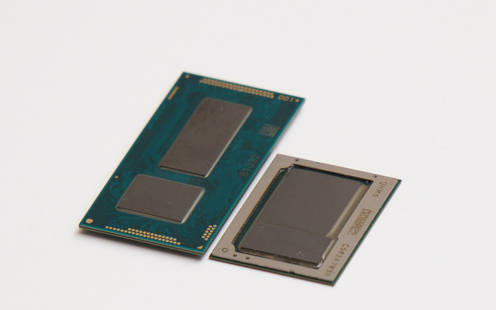 新一代的计算棒所搭载的处理器会有 Core M3 和 Core M5 两种型号。一部分原因是 Core M 本身的低功耗,TDP(Thermal Design Power,散热设计功耗)在 5W 左右,另一部分原因是相比较上一代的 Broadwell 架构的芯片,Skylake 版的 Core M 在面积上也大幅度缩减,具体可查看下面的对比图。
