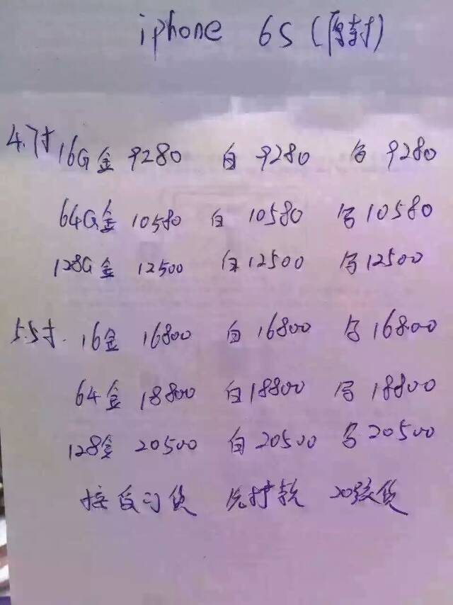 黄牛党报价单带你感受一下 iPhone 6s 的售价