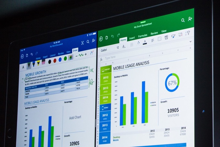 苹果这次邀请了微软 Office 的副总裁上台,这一定程度上说明苹果意识到了,在办公领域 Office 是绝对的王者。iPad Pro 的首次亮相,Office 也第一时间做了适配。配合 iOS 9 的多任务功能,用户可以在一个屏幕上同时操作 Word 和 Excel。