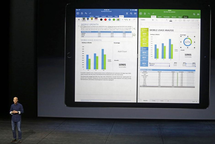 乍看上去似乎并没有觉得比 iPad Pro 比 iPad Air 2 强上许多,不过就好像人们当初批评初代 iPad 是“一个放大版的 iPod Touch 而已”时一样,最后只有靠销量来说话。所以,有时候大一点,真的会带来奇妙的变化。12.9 英寸,这个看似奇怪的尺寸其实是经过仔细斟酌的,这个大小恰好能够容下两个 iPad 应用同时在不缩放大小的情况下同屏幕运行。