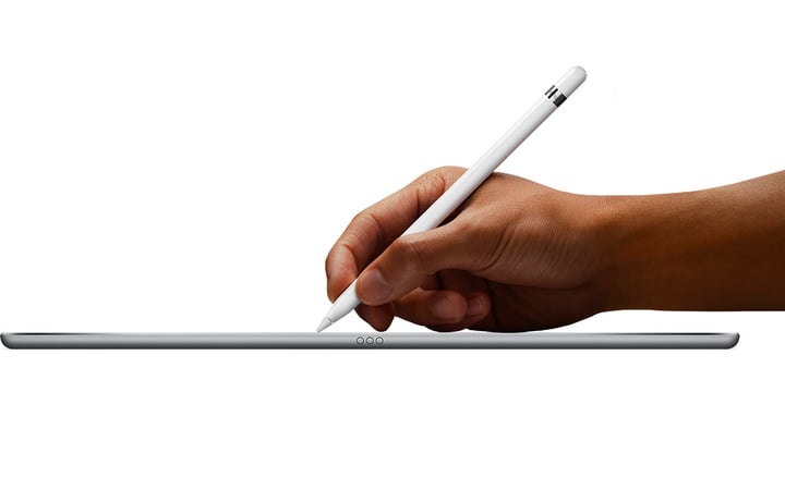 伴随着屏幕更大的 iPad Pro,苹果设计了这款 Apple Pencil 触控笔作为可选配件,它的外形跟铅笔非常相似,内置了多个传感器,在 iPad Pro 屏幕上按压、轻点或滑动都会触发不同反应,笔尖的不同部位接触到屏幕也能模仿出实体笔相对应的效果。只需直接插入 iPad 的 Lightning 接口就能为 Apple Pencil 充电。