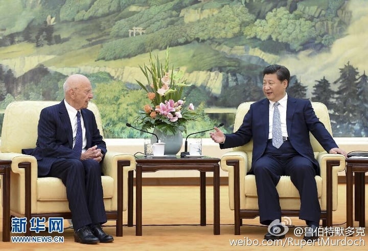 9 月 20 日,年逾 84 岁的传媒大亨默多克开通微博,其第一条微博的配图即为他与习主席会谈的照片。(图来自@鲁伯特默多克)