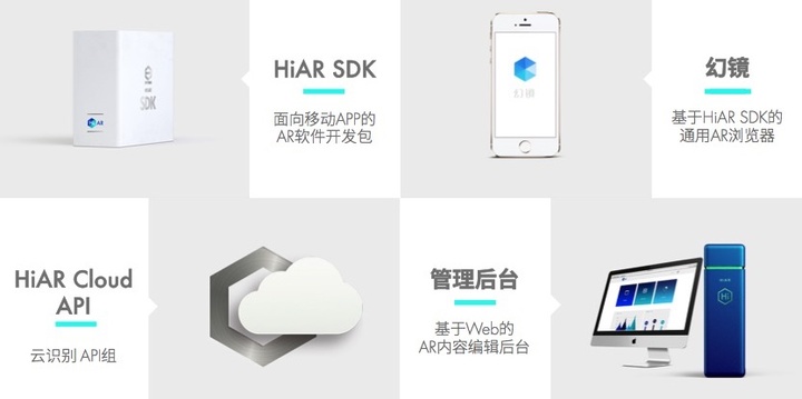 回顾亮风台的发展,2012 年成立,初期靠做外包来养活自己;2013 年开始整合之前的研发成果,把 AR 底层技术模块整合到一起;2015 年 8 月推出 HiAR 开发平台,提供 AR 核心引擎、云识别、内容管理和前端浏览 App 等一系列服务。