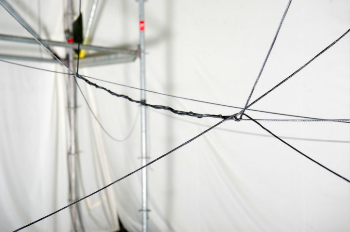 除了两边的脚架,绳索本身完全是由无人机做出来的。