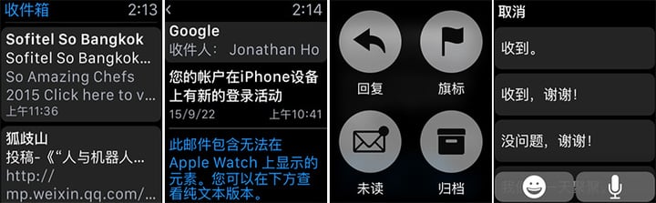 这样处理的最直观的表现就是一些本地化的 app 载入速度变快了,当你使用 Mail app 的时候,可以在几秒或更短时间内载入新邮件,并且可以使用 Siri 语音或是提前设置好的快捷短语回复。