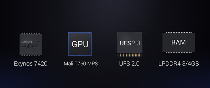 前面这些小细节更新之后,就轮到了 Pro 5 所采用的 Exynos 7420 芯片,在此之前,白永祥不出意外的,将骁龙 810 嘲讽了一番。总之,就是 Exynos 7420 工艺功耗性能要比高通骁龙 810 优秀得多,不知道高到哪里去。当然,跑分也是不知道高到哪里去,现场显示的分数是 75685 分,位列前二毫无疑问。