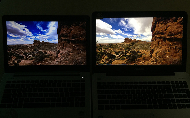 (左侧为普通显示屏笔记本,右侧为华硕 VivoBook 4000)