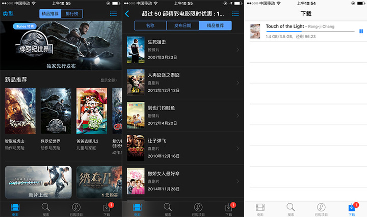 这些电影大部分都是 HD 格式,在这个小尺寸的设备上已经不会出现模糊不清晰的状况。我们可以看到,《侏罗纪世界》、《速度与激情 7》、《复仇者联盟 2:奥创纪元》等电影已经可供用户购买,而苹果还联合了一些国内的电影公司诸如博纳影业、华谊兄弟、1905 电影网等提供内容供购买。