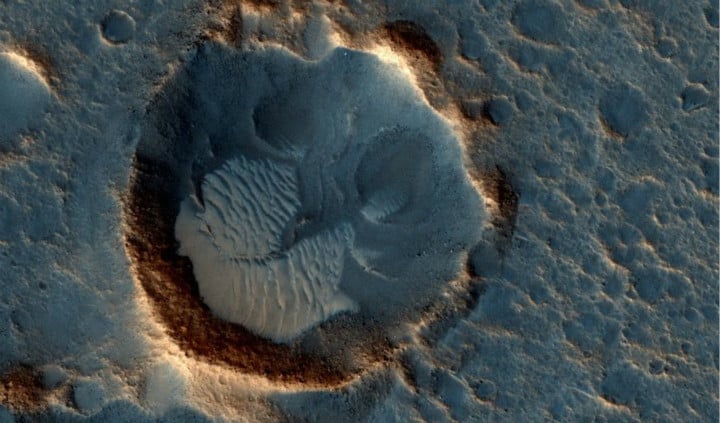 北京时间 10 月 9 号,NASA 公开了一组由火星侦察轨道器上 HiRISE 相机发回的照片。