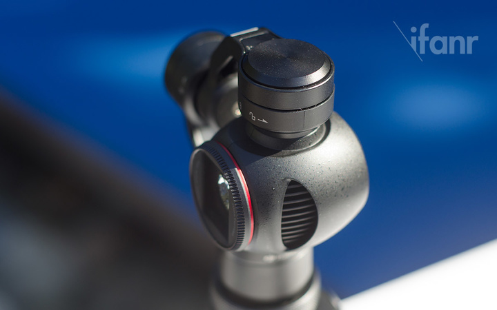 灵眸搭载的是曾用于 Inspire 1 的禅思 X3 相机模块,同样是塑料机身,SD 卡插槽位于相机侧面。