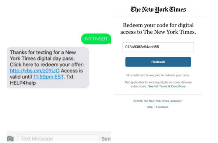 即使没有《纽约时报》的电子版账户,你也可以很快创建一个新的账号。在测试过程中,从发短信到收到链接到打开网址(或 APP)登陆或注册,整个过程花费时间不到一分钟。