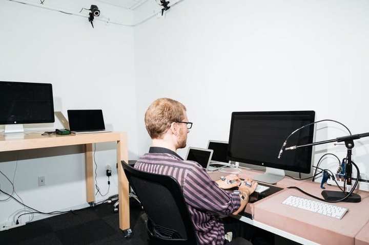 在一个用户测试实验室,苹果让调查对象坐在键盘前,把他们与传感器连接起来,测试使用设备打字对身体的影响。“我们找来了各界人士,做内部用户研究”,生态系统产品和技术部门副总裁 Kate Bergeron 说。(总的来说,她是苹果输入设备的决策者。)“我们在所有键盘上做关于肌肉疲劳度和记忆、声响、准确性和其他一些测试。”
