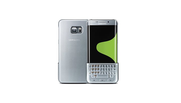 随着 Galaxy Note 5 以及 Galaxy S6 Edge+ 的发布,三星为这两款新旗舰推出了一款实体全键盘配件,名字叫做 Keyboard Case。它由一个背壳和一个可拆卸实体键盘组成,装上后壳后,需要时就可以把实体键盘装在手机正面,有趣的是,它的工作原理,是让触控屏去感应实体按键实现输入,所以无需通过蓝牙连接。
