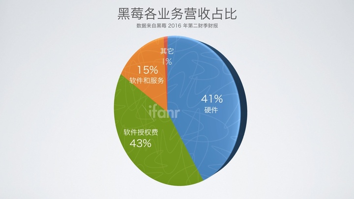 假如黑莓不做手机了会怎么样?其实,现在黑莓过得还不算特别差,程守宗上任之后,黑莓的业务被分为以下四大类:硬件,企业级软件,增值服务和技术解决方案。业务的重心从智能手机业务转向了行业服务和软件应用,黑莓手机等硬件产品占营收比例仍然在持续下降。这一季度,手机产品带来的收入仅占全部营收的41%,43%的收入来自增值服务和黑莓技术解决方案,还有 15% 来自企业级软件业务——换言之,黑莓现在有将近六成的业务与手机硬件无关。