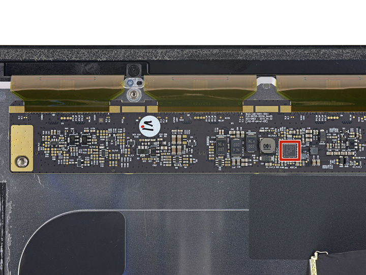 由于分辨率提升,内部的显示器排线也比之前稍宽一些,从以前的 12.4 毫米增大为 16.4 毫米。