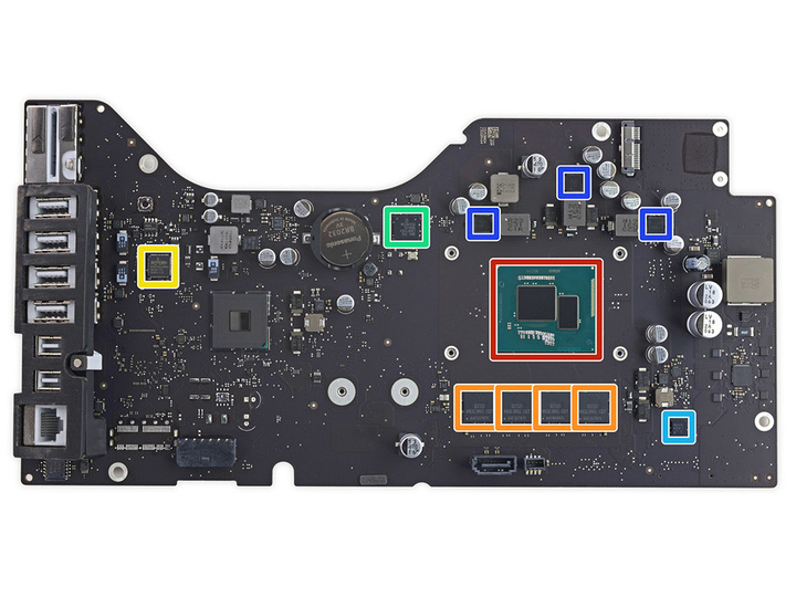- 橙:三星 2GB LPDDR3-1866 内存颗粒(四颗,总计 8GB)