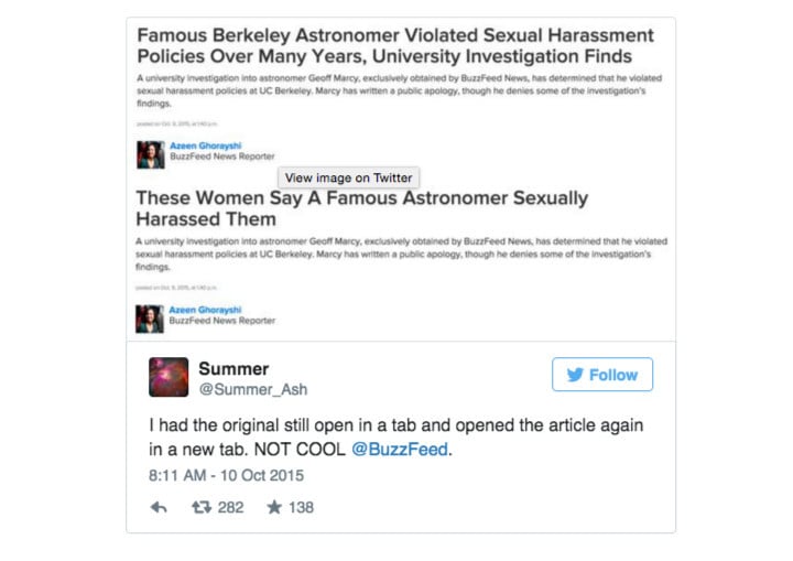 注意“长期”、“多名”这两个关键词,需要说明的是,Geoff Marcy 对女学生进行性骚扰这件事由来已久,校方以及科学圈内也有不少人知情。