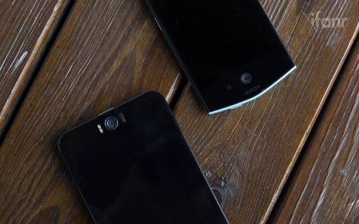 Zenfone Selfie 和 Zenfone 2 在设计上可以算作是同源的,机身线条和尺寸比较接近,都是 5.5 英寸屏幕,正面全黑面板,下方同心圆装饰,背部的弧面后盖,音量键也在背部中央。不同的是 Zenfone Selfie 因为前置摄像头的原因,整体要略微长一些。