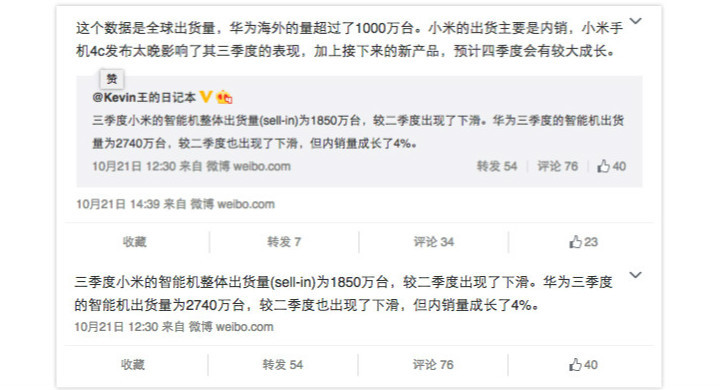 比如 IHS Technology 中国研究总监在微博上连发的这两条状态: