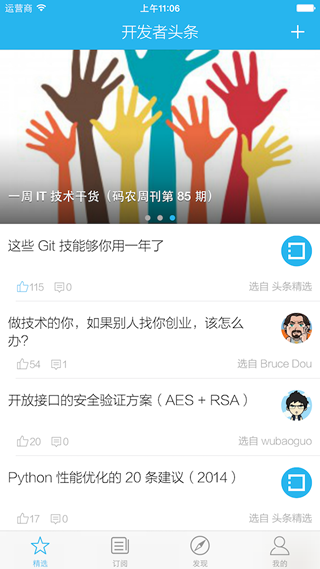 开发者头条是由基于开发者阅读和分享的社交平台。对比 1.0 版,新版的应用图标和视觉交互有所改进,用户可以订阅自己感兴趣的主题和创建自己感兴趣的主题,还可以关注他人。