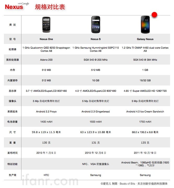 附表:三代 Nexus 规格对比