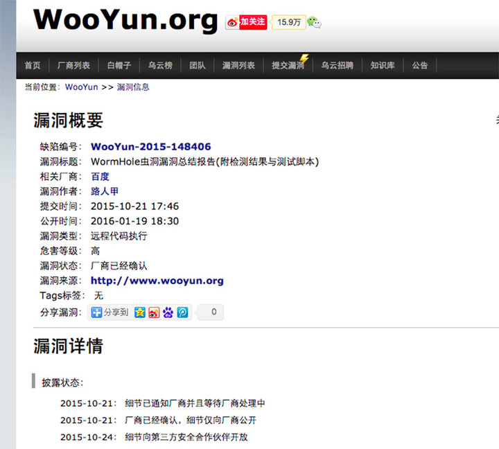 目前乌云的这些漏洞已经得到了百度官方的确认,并已进行修复,百度方面表示目前升级到最新的软件即可解决这个问题。