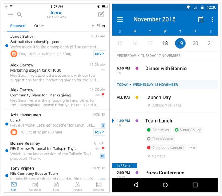 微软今天在官方博客公布了 Outlook iOS 和 Android 端的新版 app,两者设计都有所改进。