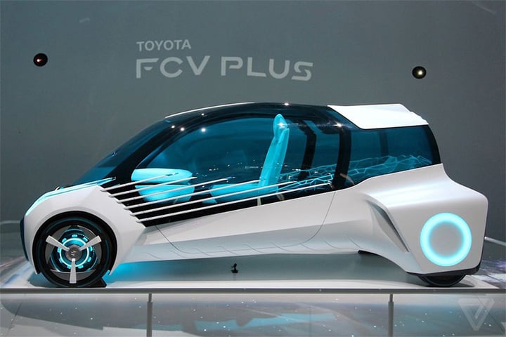 丰田也来了,除去拥有 Mirai 的氢燃料动力车外,丰田展出了一辆 FCV Plus 概念车。