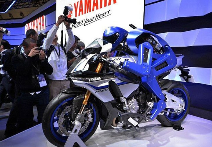 这个机器人叫 Motobot,这是一个会骑摩托的机器人,或者说是一个可以学习驾驶摩托车的机器人。现在它已经可以控制雅马哈 YZR-R1M,并且在一个空旷的场地内以 100KM/H 的速度快速行驶。