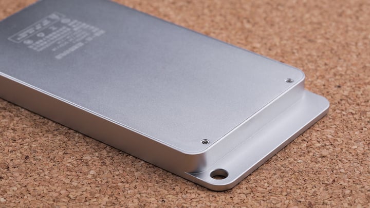 Quarter 可能是目前市面上唯一兼容苹果 MageSafe 接口的移动电源,容量为 5000 mAh。它大小与 iPhone 6s Plus 相仿,厚度为 12.5 mm,重 180g。电源的外壳材质是磨砂铝材,感觉与苹果笔记本的外壳材质相近。